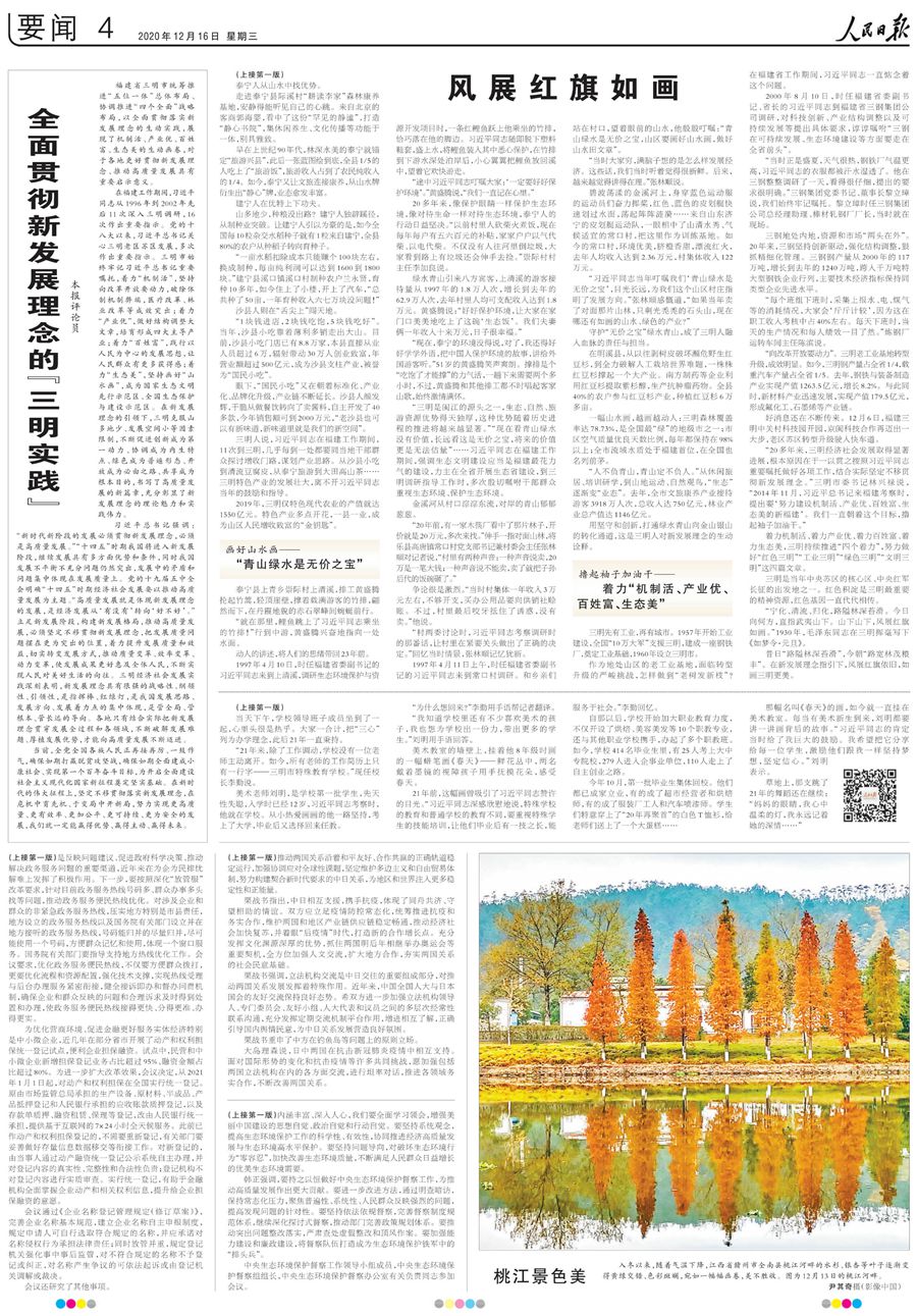 福建省三明市統籌推進“五位一體”總體布局、協調推進“四個全面”戰略布局,以全面貫徹落實新發展理念的生動實踐,展現了機制活、產業優、百姓富、生態美的生動畫卷,對于各地更好貫徹新發展理念、推動高質量發展具有重要啟示意義。今天人民日報推出多篇報道,刊發評論員文章,聚焦三明的探索和實踐。