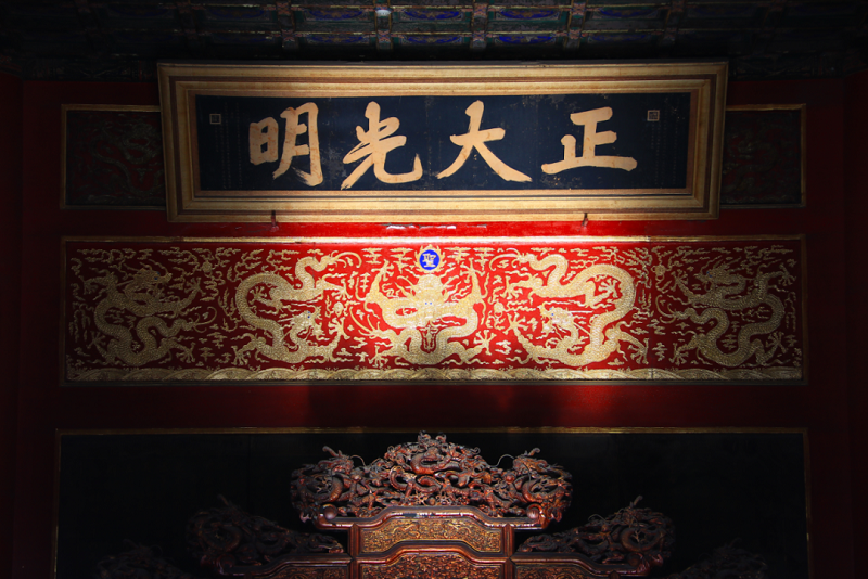 “正大光明”匾由順治帝題寫,懸掛于乾清宮寶座上方。因雍正帝視其為宮中最高且最難接觸之地,故決定將立儲密折存放其后。