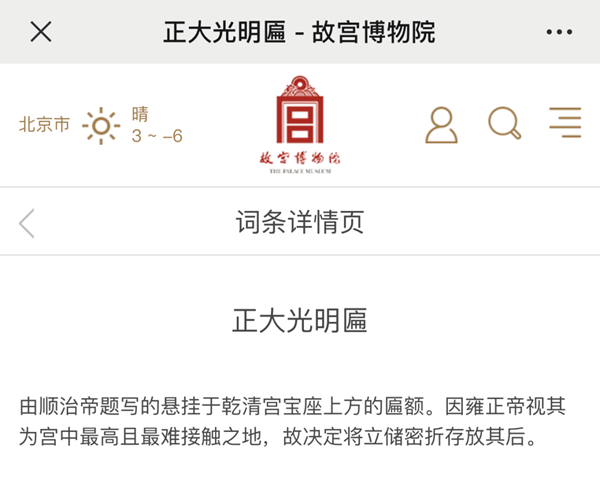 會反射到故宮的“正大光明”匾上