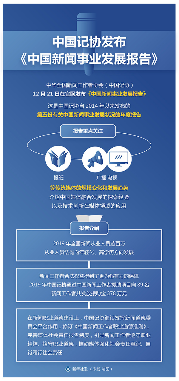 新華社北京12月21日電 中華全國新聞工作者協會(中國記協)21日在官網發布《中國新聞事業發展報告》。這是中國記協自2014年以來發布的第五份有關中國新聞事業發展狀況的年度報告。