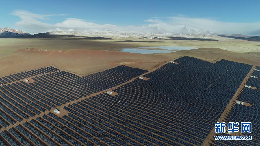 這是2019年1月31日在西藏那曲市雙湖縣拍攝的太陽(yáng)能發(fā)電站(無(wú)人機(jī)照片)。新華社記者 普布扎西 攝