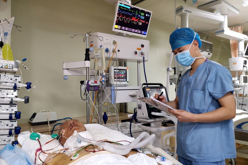 12月18日,青島大學醫(yī)學院研究生蘇柯帆在醫(yī)院里實習。