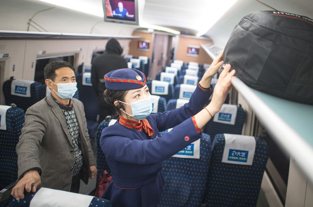 “現在說得最多的就是,請乘客戴好口罩、做好防護。經歷了這么大一場疫情,感覺肩上的擔子更重了,做好服務的同時更要確保每一名乘客的安全。”站在記者面前的中國鐵路武漢局集團有限公司武漢客運段高鐵乘務員艾婷婷20歲剛出頭,言語中顯露出超出同齡人的成熟。