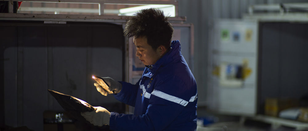 李杰在中通快遞網點分揀快遞(12月16日攝)。