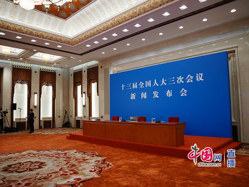 十三屆全國人大三次會議新聞發布會即將開始。中國網 楊佳 攝