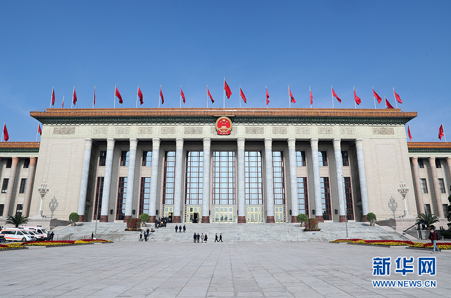 十三屆全國人大三次會議22日上午9時在人民大會堂開幕,新華網進行現場直播。圖為人民大會堂外景。新華網 翟子赫 攝