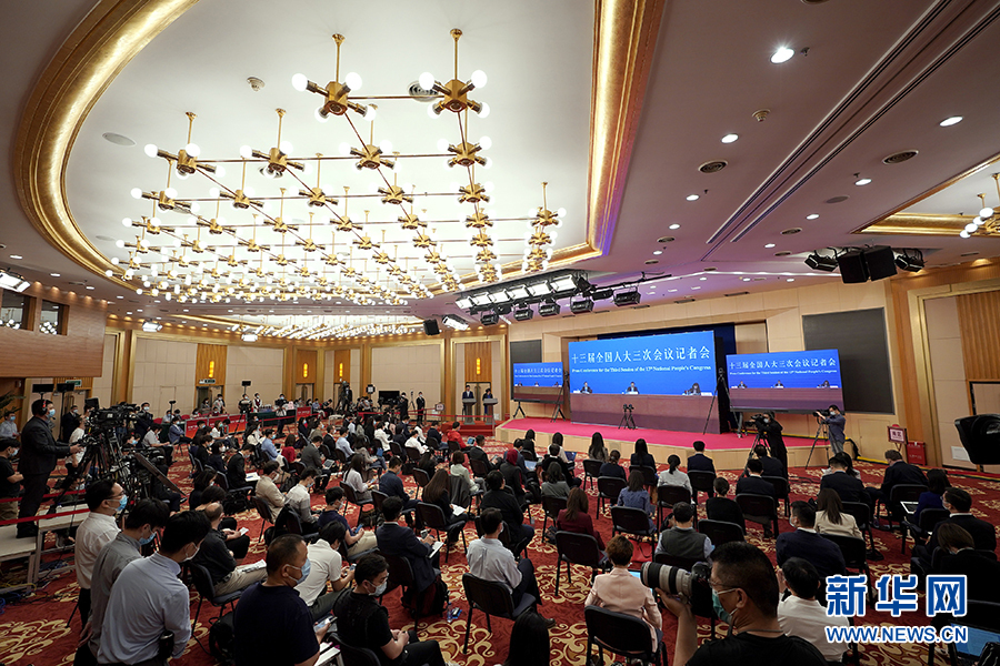 5月28日,國務院總理李克強在北京人民大會堂出席記者會并回答中外記者提問。這是記者在梅地亞中心多功能廳采訪。 新華社記者 劉金海 攝