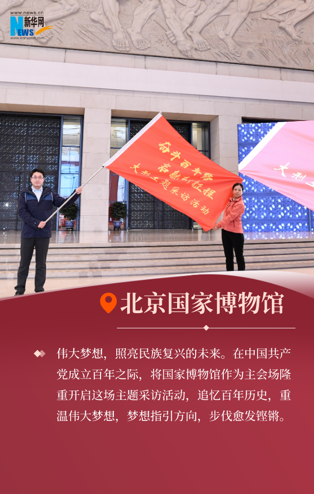 記錄歷史偉業,展現百年風華。“奮斗百年路 啟航新征程”大型主題采訪活動18日啟動。中央和地方主要媒體的編輯記者代表在北京國家博物館主會場和上海、嘉興、井岡山、遵義、延安、西柏坡6個分會場參加啟動儀式。他們將鄭重啟航,走進歷史深處、走進人民心間、走進思想高地、走進奮斗一線,全面展現百年大黨的夢想與追求、情懷與擔當,突出展示黨的十八大以來黨領導人民推進偉大斗爭、偉大工程、偉大事業、偉大夢想取得的歷史性成就。見證百年,出發!