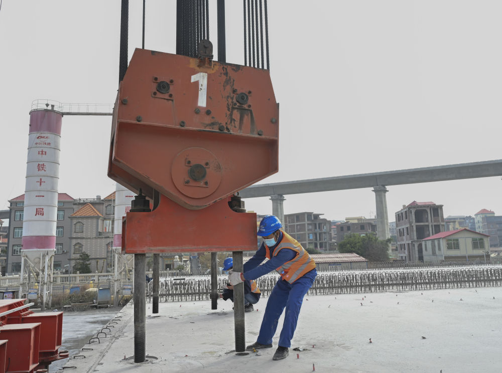 在位于福建省莆田市的中鐵十一局新建福廈鐵路4標靈川制梁場,51歲的河南籍提梁班工人杜學剛和工友們忙碌著。他所在的項目工地正處在施工的攻堅階段。