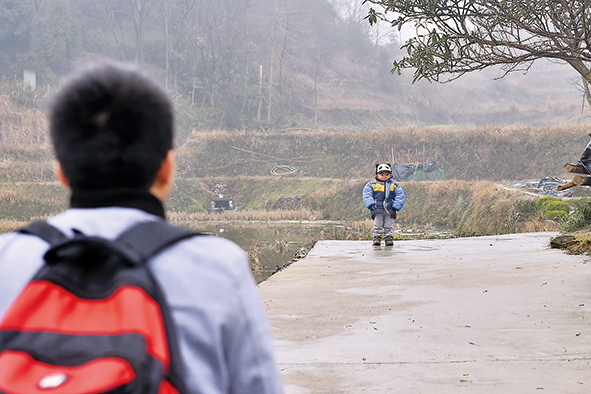我和同事跟在石欣身后,拐過一道路口,看見不遠處有個小小的身影,走在前面的石欣用方言喊了一聲,“家鴻”。正是他在外打工最思念的兒子!本能讓我馬上握緊了手中的相機。