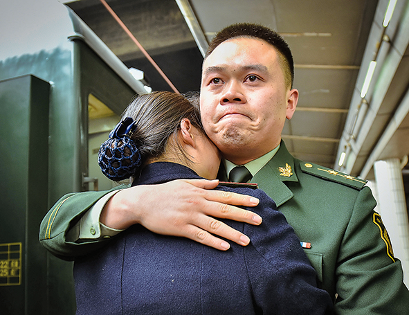 2016年2月3日下午,樊鼎來不及換下軍裝,就從他執勤的廣州南站調班,趕到30公里外的廣州東站,雷云值乘的臨客列車將在這里靠站。