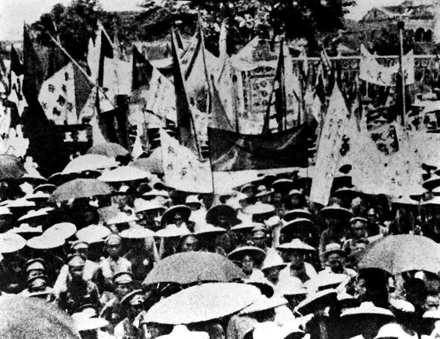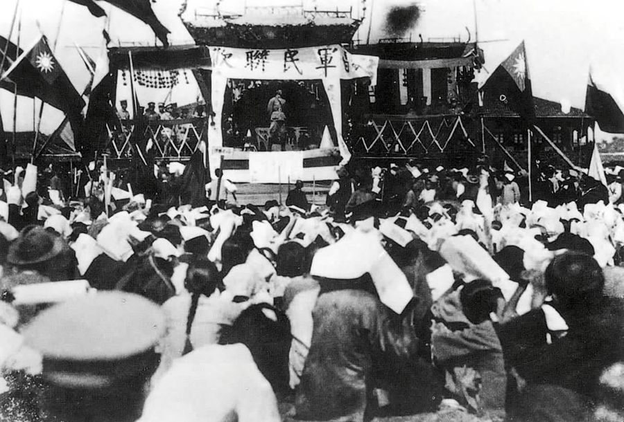 圖為北伐軍攻克武昌,武漢軍民舉行聯歡大會 新華社圖片