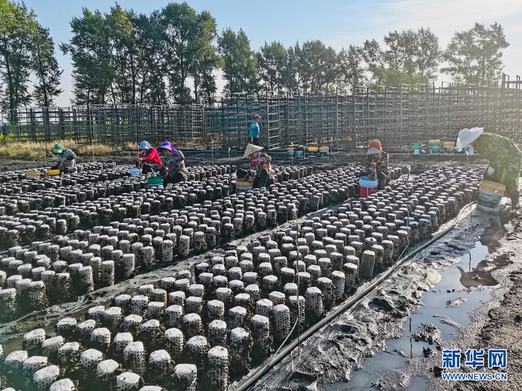 在黑龍江省寶清縣寶清鎮雙泉村的食用菌基地,村民們在采摘木耳(7月3日攝)。新華社發