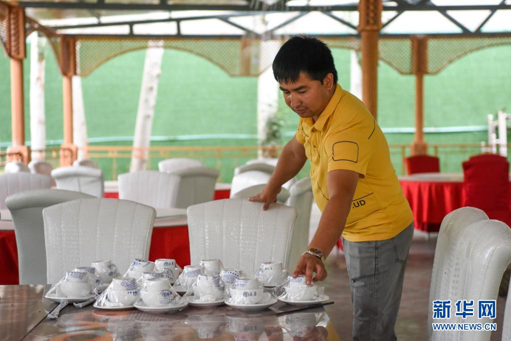 7月5日,在新疆阿克蘇市依干其鄉巴格其村,村民在自己經營的農家樂里忙碌。新華社記者 丁磊 攝