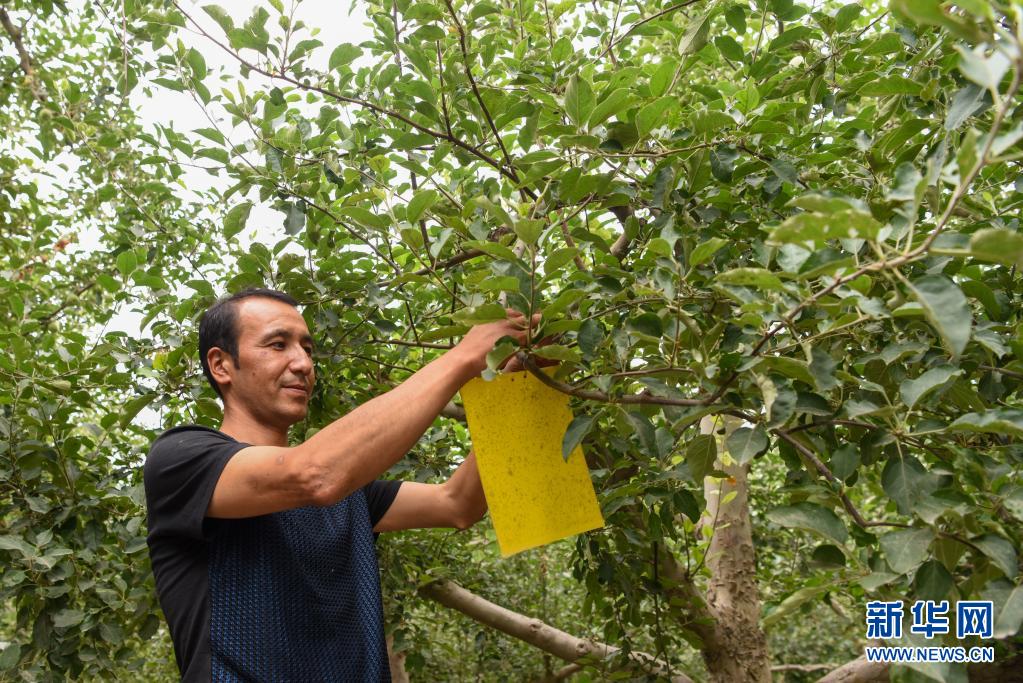 7月5日,在新疆阿克蘇市依干其鄉巴格其村,村民在采摘園忙碌。新華社記者 丁磊 攝