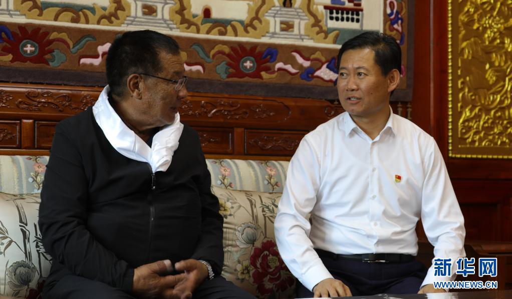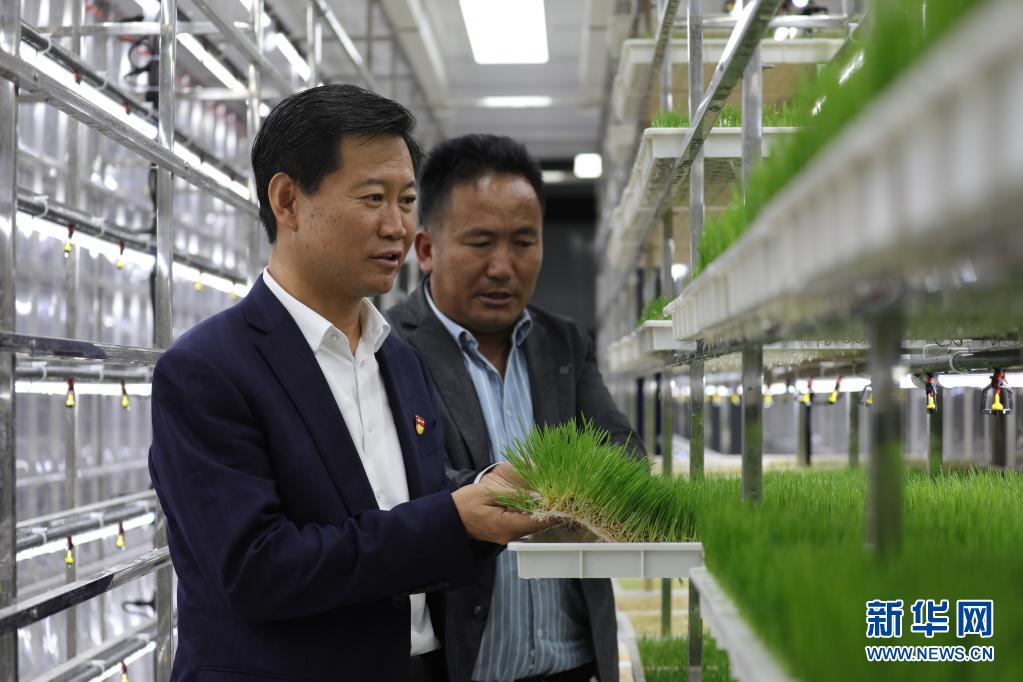 7月6日,張峰(左)在青海省海南藏族自治州恰噶畜牧業有限公司調研。新華社記者 趙玉和 攝