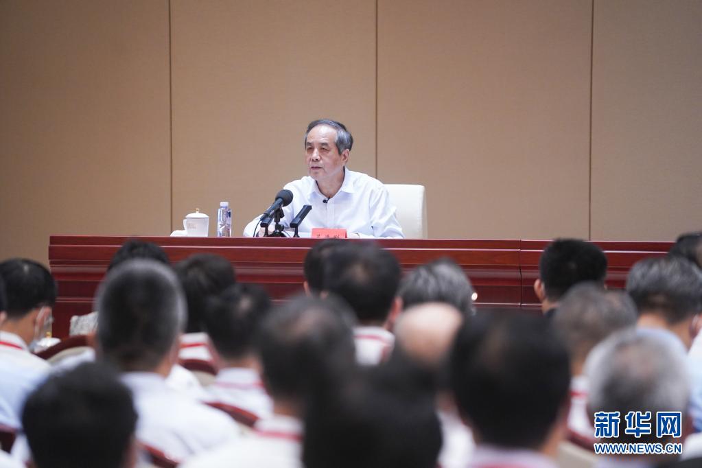 7月15日,黨史學習教育中央宣講團成員吳德剛在第六場報告會上作宣講報告。新華社記者 陳曄華 攝