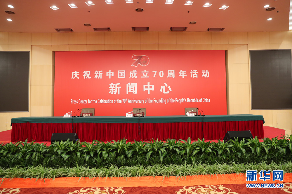 9月27日,慶祝中華人民共和國成立70周年活動新聞中心在梅地亞中心二層新聞發(fā)布廳舉辦第三場新聞發(fā)布會,中央農村工作領導小組辦公室主任、農業(yè)農村部部長韓長賦,國務院扶貧開發(fā)領導小組辦公室主任劉永富介紹全面建成小康社會,扎實推進脫貧攻堅和鄉(xiāng)村振興,并回答記者提問。圖為發(fā)布廳現(xiàn)場。新華網(wǎng) 陳杰 攝