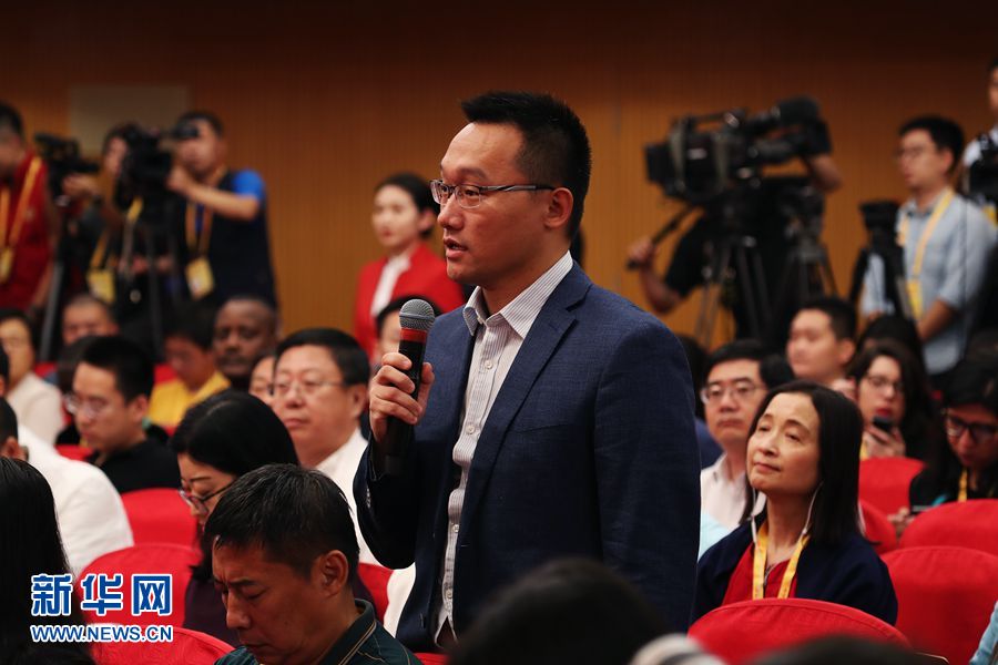 9月29日,慶祝中華人民共和國(guó)成立70周年活動(dòng)新聞中心在北京梅地亞中心二層新聞發(fā)布廳舉辦第四場(chǎng)新聞發(fā)布會(huì)。圖為媒體記者提問(wèn)。新華網(wǎng)記者 焦鵬 攝