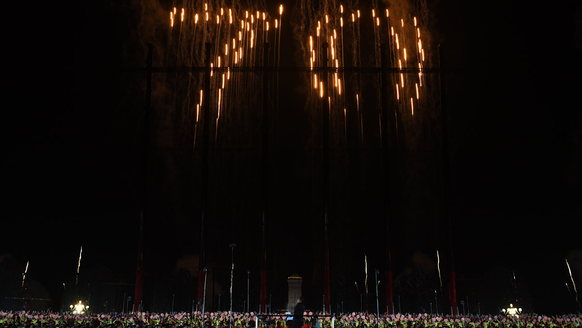盛裝的天安門廣場,五星紅旗迎風(fēng)招展。從盛大的國慶閱兵到歡樂的群眾游行,轟鳴的禮炮、嘹亮的口號、鏗鏘的步履、喧天的鑼鼓、紛飛的氣球、自信的歡歌……生動的畫面?zhèn)飨蛭逯?,歡樂的笑臉感染世界。