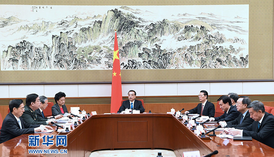 1月22日,國務院總理李克強在北京主持召開國務院第八次全體會議,討論擬提請十三屆全國人大一次會議審議的政府工作報告,決定將《政府工作報告(征求意見稿)》發往各省(區、市)和中央國家機關有關部門、單位征求意見。新華社記者 饒愛民 攝