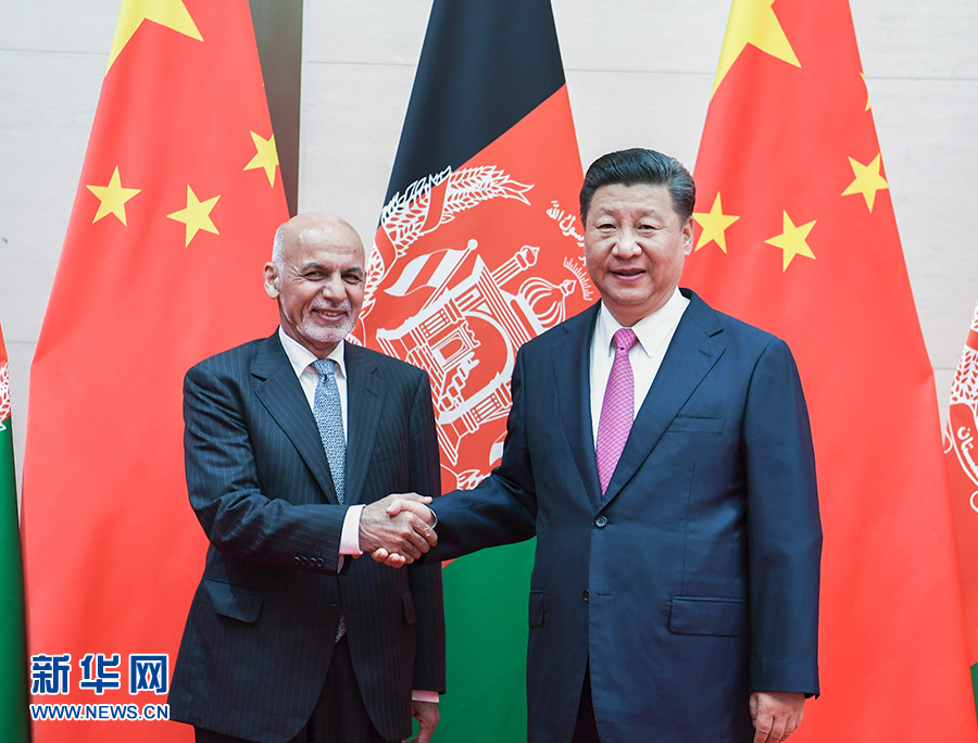 6月10日,國家主席習近平在青島會見阿富汗總統(tǒng)加尼。新華社記者 高潔 攝