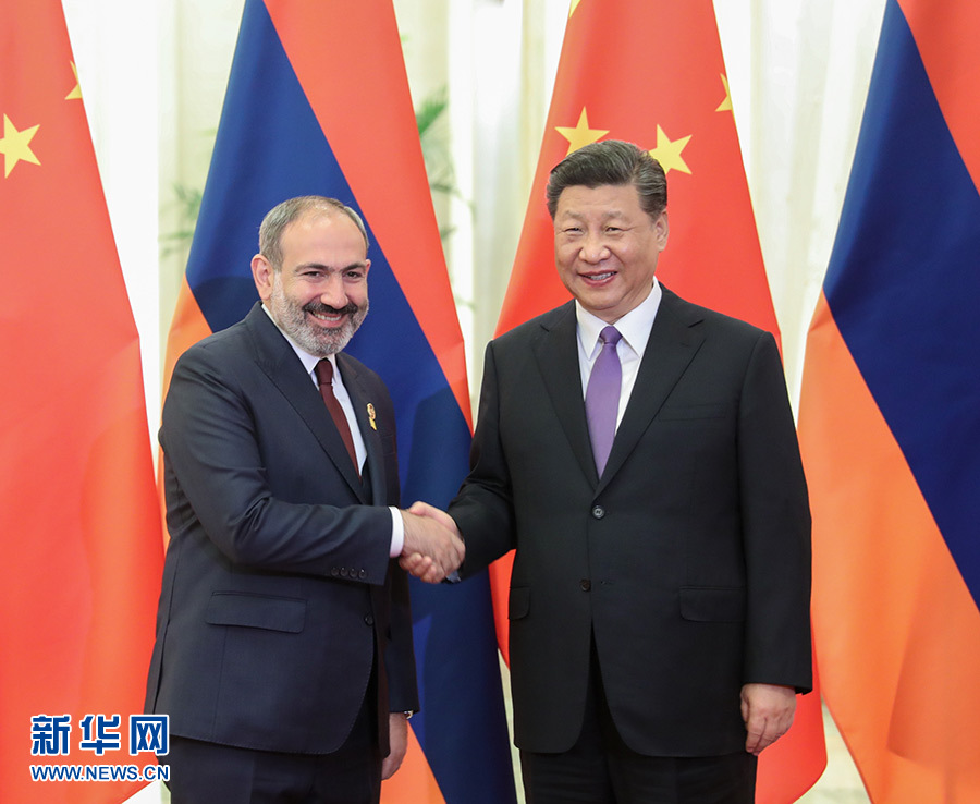 5月14日,國家主席習近平在北京人民大會堂會見來華出席亞洲文明對話大會的亞美尼亞總理帕希尼揚。 新華社記者 姚大偉 攝