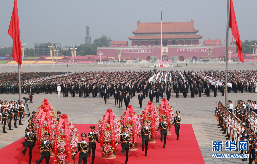9月30日上午,習(xí)近平、李克強(qiáng)、栗戰(zhàn)書、汪洋、王滬寧、趙樂際、韓正、王岐山等黨和國(guó)家領(lǐng)導(dǎo)人來到北京天安門廣場(chǎng),出席烈士紀(jì)念日向人民英雄敬獻(xiàn)花籃儀式。 新華社記者 龐興雷 攝