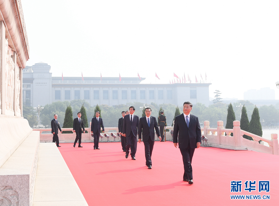 9月30日上午,習近平、李克強、栗戰書、汪洋、王滬寧、趙樂際、韓正、王岐山等黨和國家領導人來到北京天安門廣場,出席烈士紀念日向人民英雄敬獻花籃儀式。 新華社記者 申宏 攝