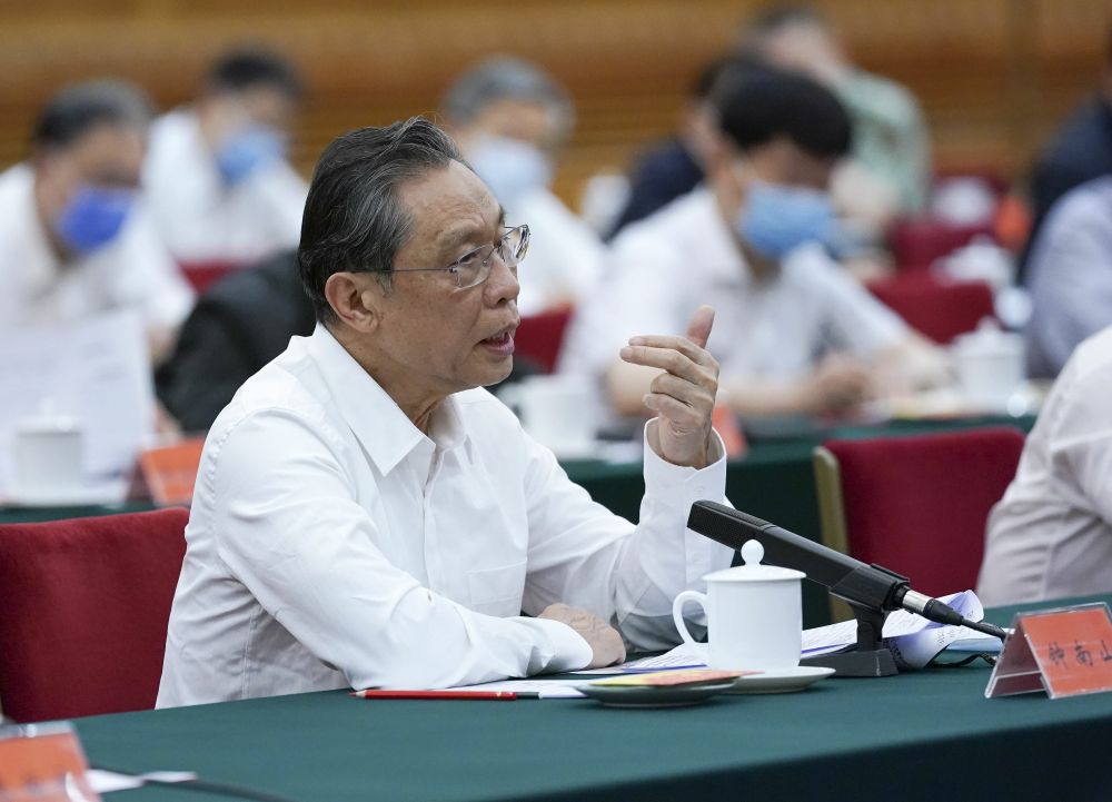 發言的七位代表中,廣州醫科大學呼吸內科教授鐘南山院士、天津中醫藥大學校長張伯禮院士、首都醫科大學附屬北京朝陽醫院副院長童朝暉是來自抗疫一線的醫學專家;