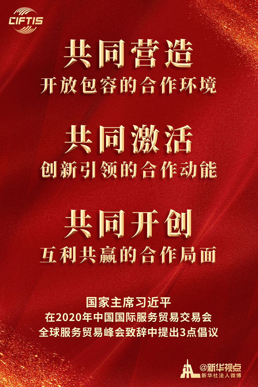 致辭中,習近平主席就服務業開放合作提出3點倡議,宣示了大變局下倡導開放合作和推動經濟全球化的中國主張。