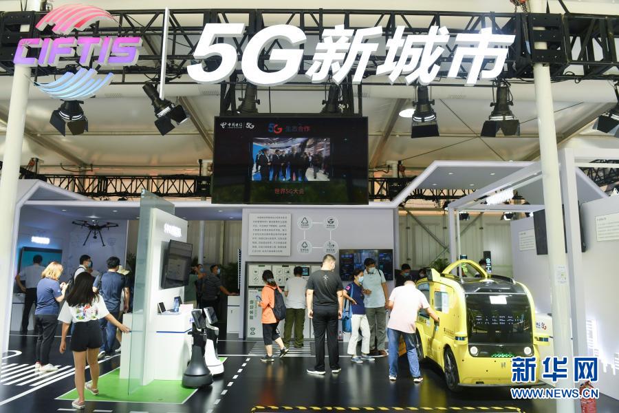 觀眾在2020年中國國際服務貿易交易會5G通信服務專題展區參觀(9月7日攝)。新華社記者 魯鵬 攝