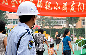 天津中小學開學 校園保安帶4斤裝備上崗