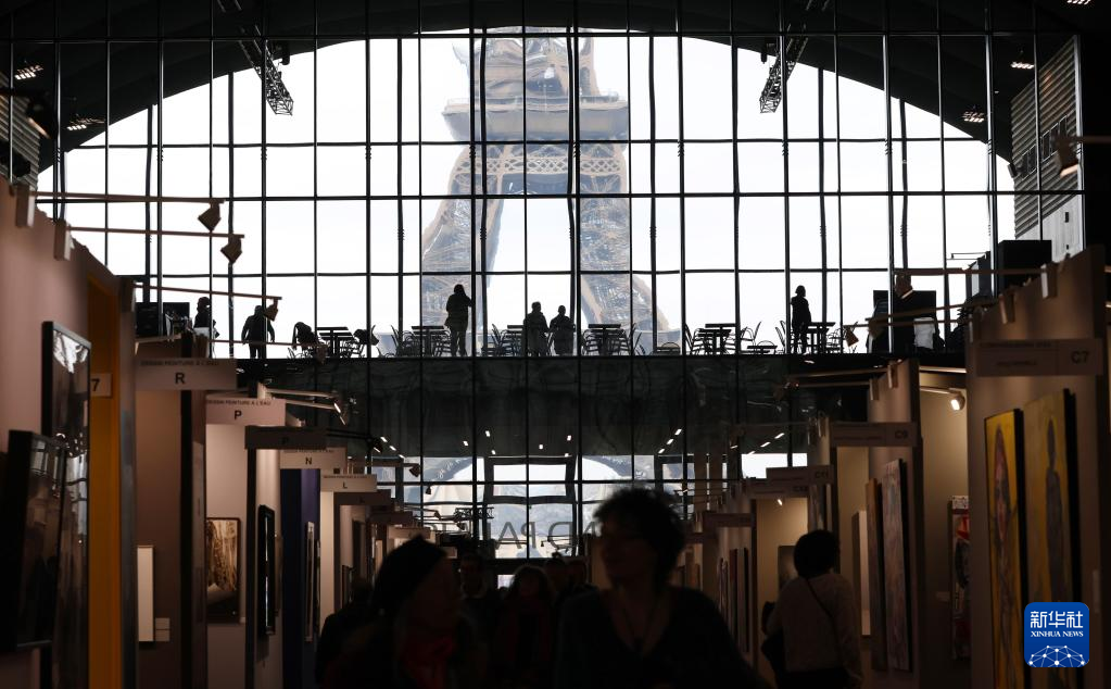 2月16日,在位于法国巴黎埃菲尔铁塔附近的临时大皇宫,人们在ART CAPITAL艺术展上参观。