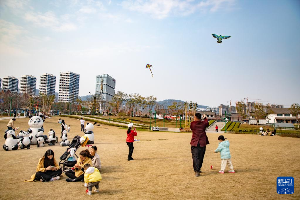 春光明媚,人们踏青出游,放飞风筝,乐享春日美好时光。