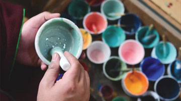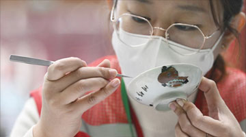 3月29日,视障学生在展览现场通过盲文以及可供触摸的文物模型和五感体验盒等观展。