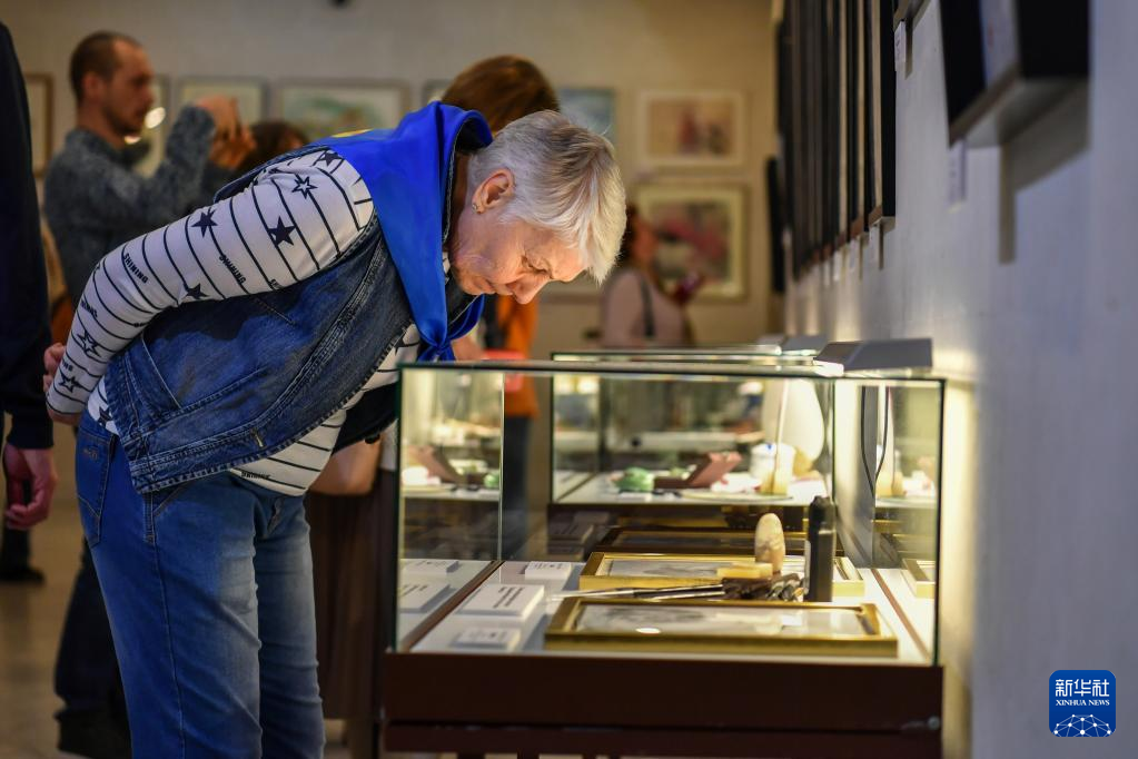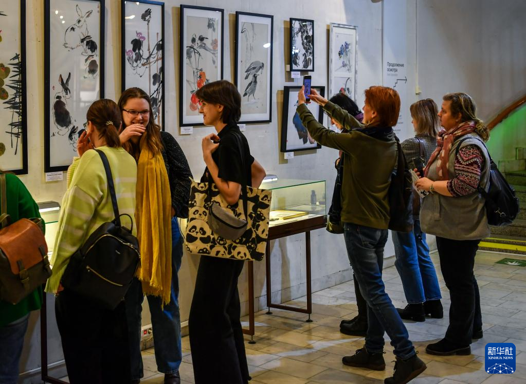 当日,正在莫斯科达尔文博物馆举办的中国绘画展,吸引众多市民前来参观。