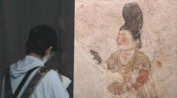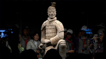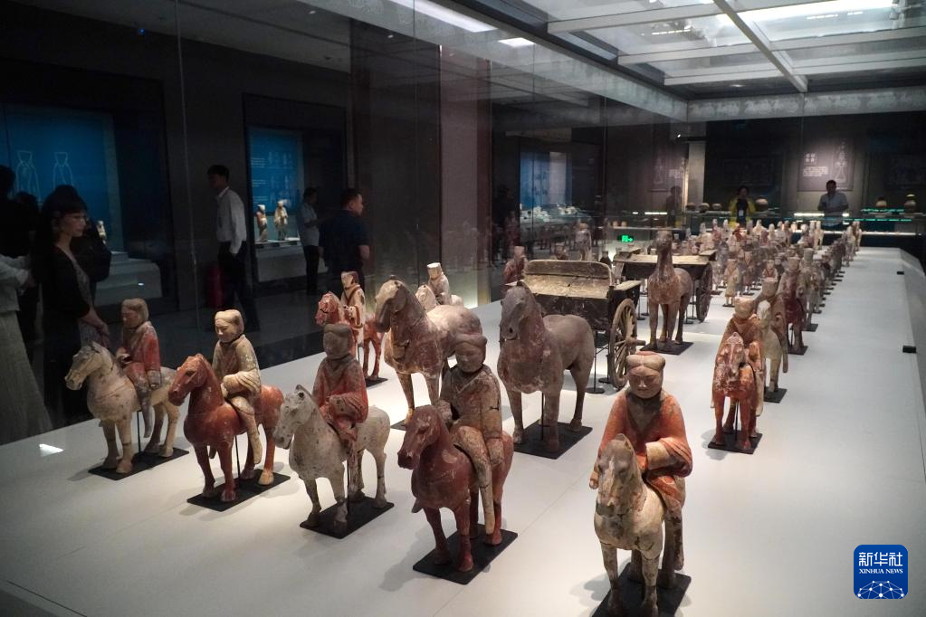 5月15日在山东省青州博物馆新馆拍摄的正在展出中的西汉彩绘陶俑。