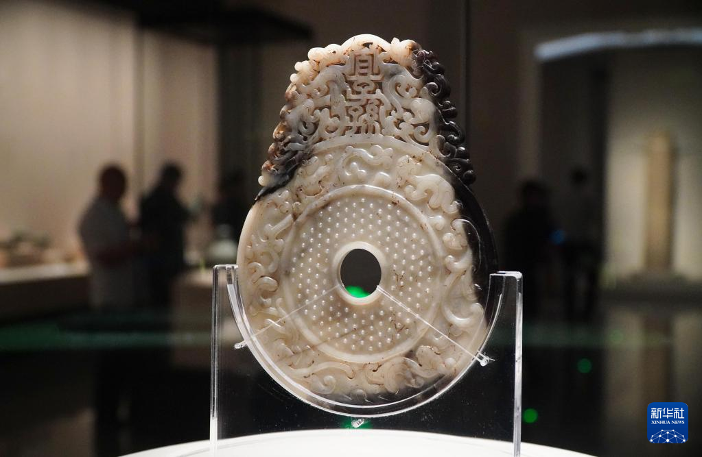 5月15日,在山东省青州博物馆新馆,东汉“宜子孙”玉璧正在进行展出。