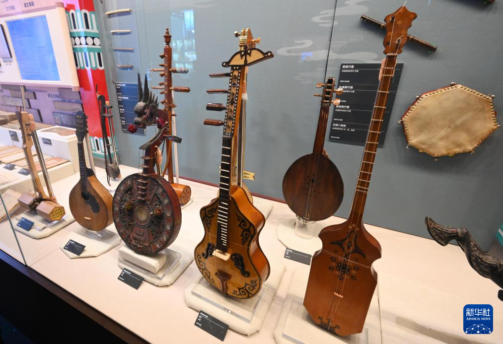 这是“铸牢中华民族共同体意识文物古籍展”展出的民族乐器(8月2日摄)。