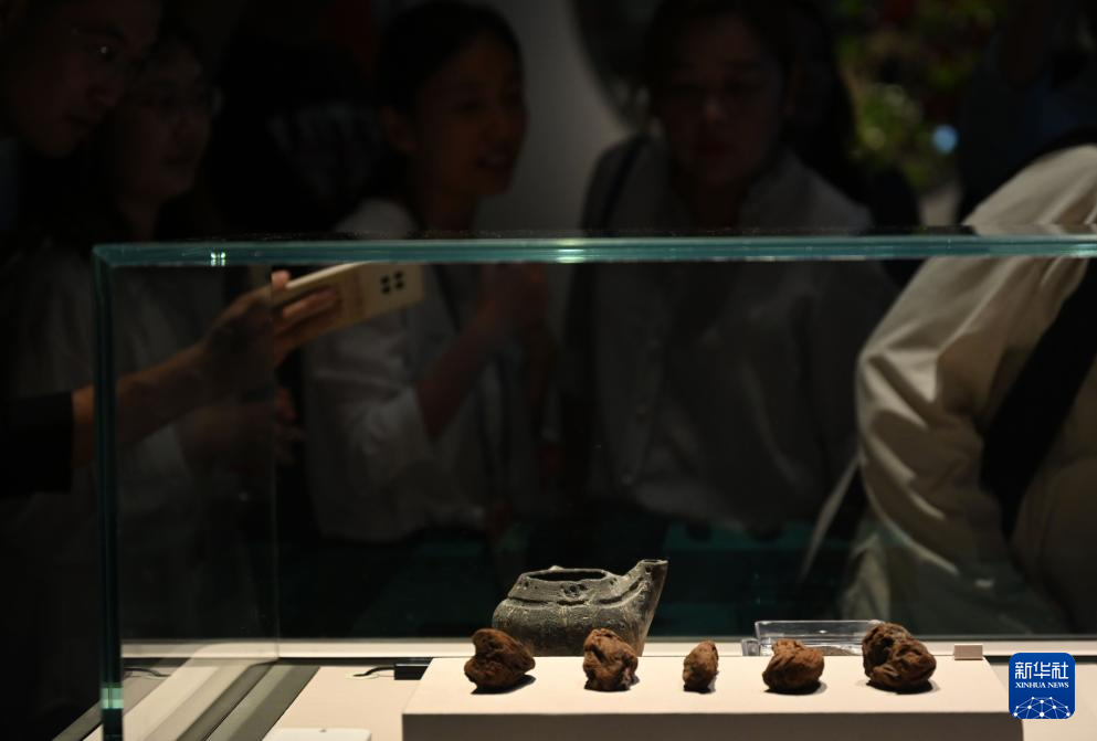 9月1日,嘉宾参观浙江余姚田螺山遗址出土的人工种植茶树根。