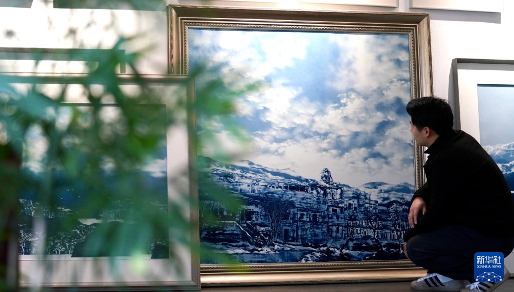 经过20多年来的不断尝试,根据厚薄不同的青花底坯,罗小聪如今仅凭一把刮胡刀和刻刀,便可以娴熟地创作出不同意境的山峦与天空、河流与冰川、村庄与人物……