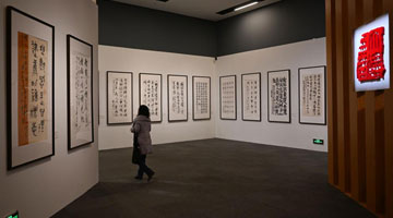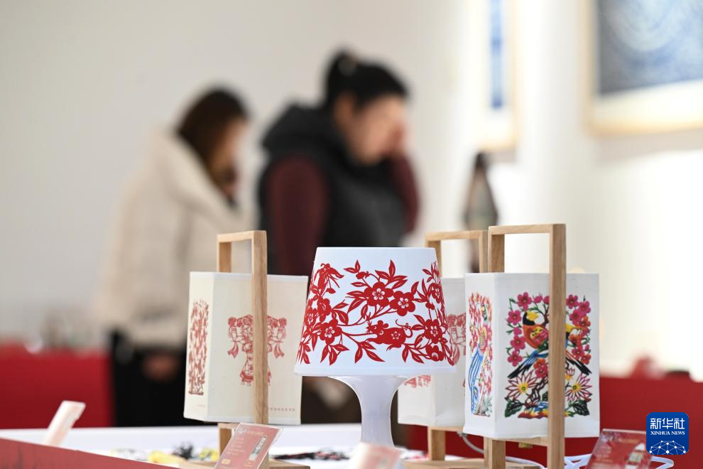 12月26日,市民在河北省群众艺术馆欣赏非遗文创作品。