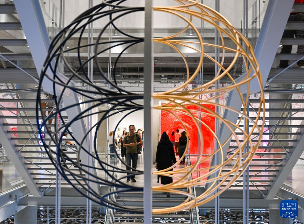 10月10日,参观者在土耳其伊斯坦布尔现代艺术博物馆内观看展品。