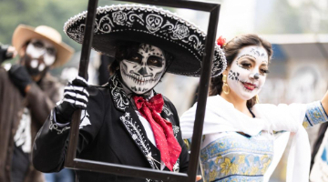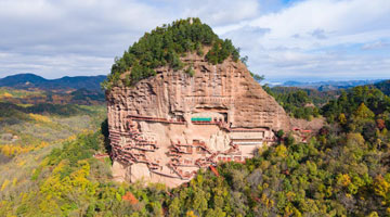 11月4日,外宾在河南省洛阳市龙门石窟景区礼佛台拍照留念。