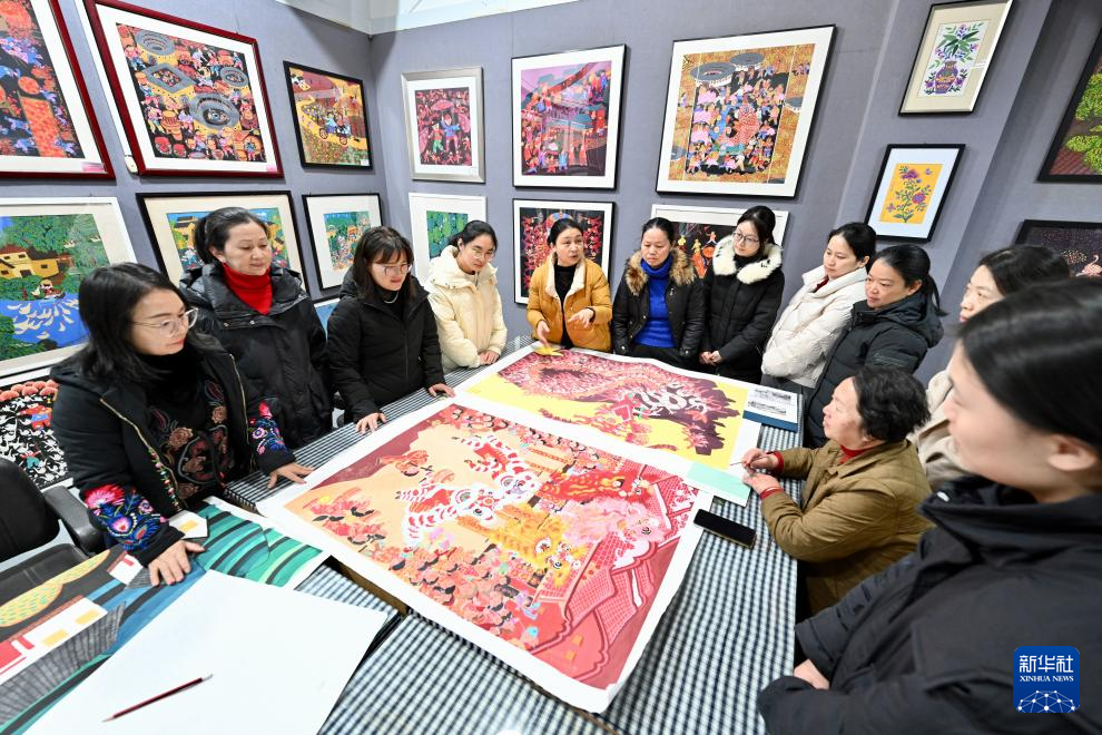 1月10日,农民画爱好者在漳平市农民画院学习、创作农民画。
