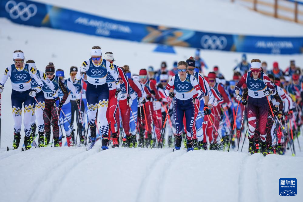 当地时间2月7日,米兰-科尔蒂纳冬奥会越野滑雪女子双追逐(10公里传统技术+10公里自由技术)比赛在意大利泰塞罗举行。