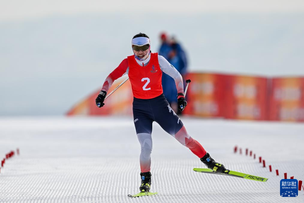 当日,第十四届全国冬季运动会越野滑雪公开组女子双追逐(7.5公里传统技术+7.5公里自由技术)比赛在内蒙古乌兰察布市凉城滑雪场举行。