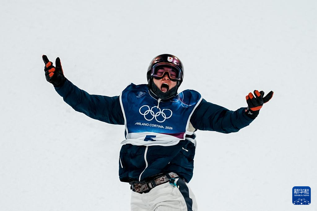 2月7日,日本选手木俣椋真在比赛中庆祝。他获得亚军。