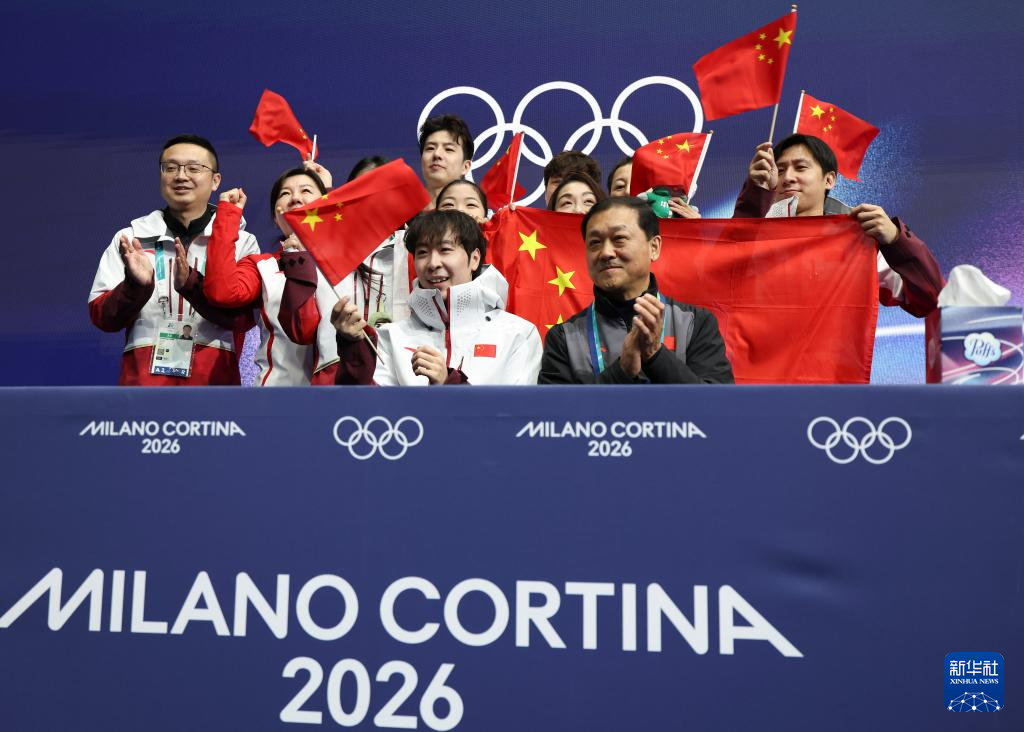 2月7日,队友为中国队选手金博洋加油。